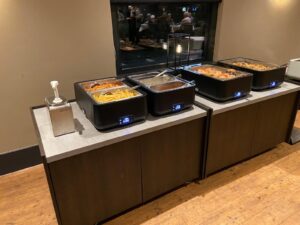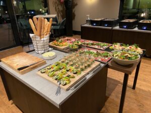 Bij binnenkomst werden we verrast door 2 Kerstvrouwen met een welkomstdrankje.